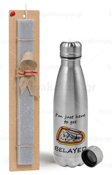 I'm just here to get Belayed, Easter Set, metallic Inox water bottle (750ml) & aromatic flat Easter candle (30cm) (GRAY)