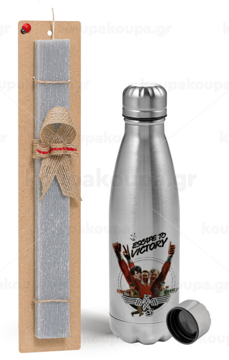 Escape to victory, Easter Set, metallic Inox water bottle (750ml) & aromatic flat Easter candle (30cm) (GRAY)