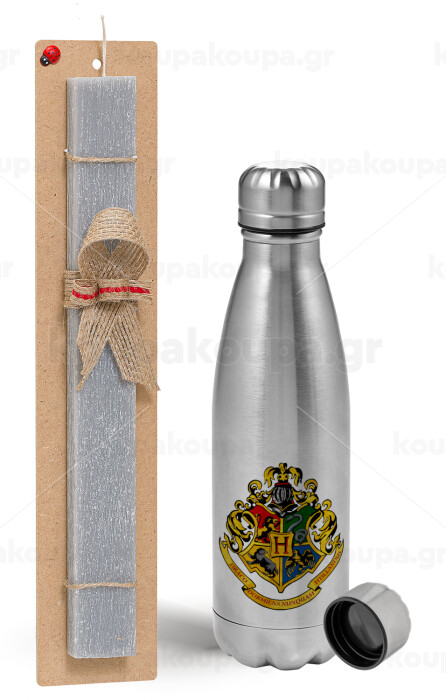 Hogwart's, Easter Set, metallic Inox water bottle (750ml) & aromatic flat Easter candle (30cm) (GRAY)