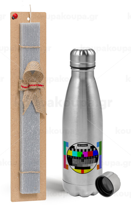 No signal, Easter Set, metallic Inox water bottle (750ml) & aromatic flat Easter candle (30cm) (GRAY)