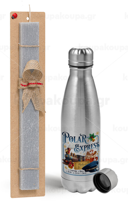 The Polar Express, Easter Set, metallic Inox water bottle (750ml) & aromatic flat Easter candle (30cm) (GRAY)