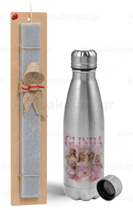 Wicked Glinda, Easter Set, metallic Inox water bottle (750ml) & aromatic flat Easter candle (30cm) (GRAY)