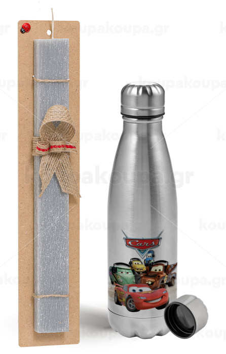 Αυτοκίνητα, Easter Set, metallic Inox water bottle (750ml) & aromatic flat Easter candle (30cm) (GRAY)