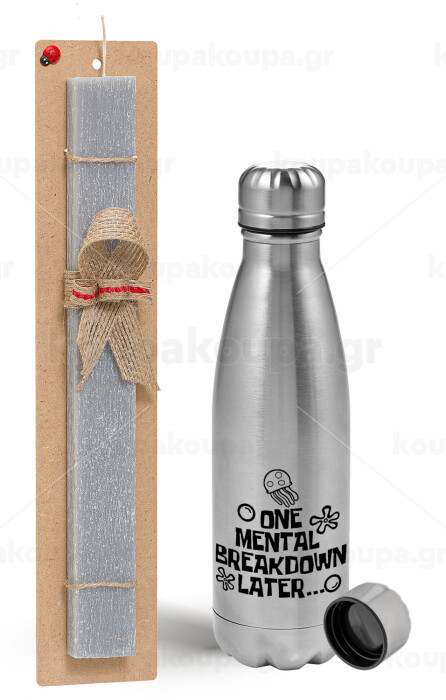 one mental breakdown later bob spongebob, Easter Set, metallic Inox water bottle (750ml) & aromatic flat Easter candle (30cm) (GRAY)