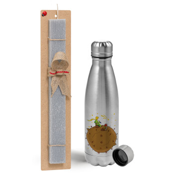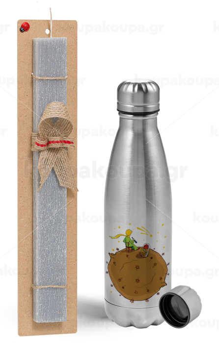 The Little prince planet, Easter Set, metallic Inox water bottle (750ml) & aromatic flat Easter candle (30cm) (GRAY)