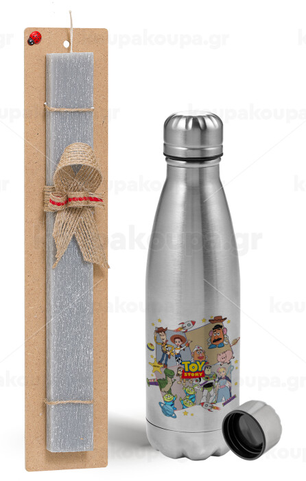 toystory characters, Easter Set, metallic Inox water bottle (750ml) & aromatic flat Easter candle (30cm) (GRAY)