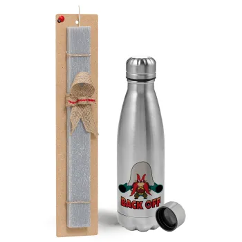 Yosemite Sam Back OFF, Easter Set, metallic Inox water bottle (750ml) & aromatic flat Easter candle (30cm) (GRAY)