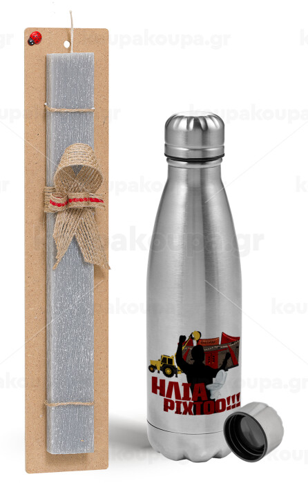 Ηλία ρίχτο!, Easter Set, metallic Inox water bottle (750ml) & aromatic flat Easter candle (30cm) (GRAY)