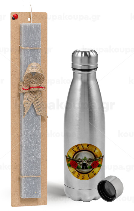 Guns N' Roses, Easter Set, metallic Inox water bottle (750ml) & aromatic flat Easter candle (30cm) (GRAY)