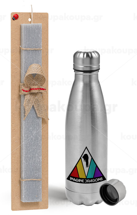 Imagine Dragons, Easter Set, metallic Inox water bottle (750ml) & aromatic flat Easter candle (30cm) (GRAY)