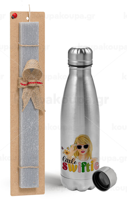 Little Swiftie, Easter Set, metallic Inox water bottle (750ml) & aromatic flat Easter candle (30cm) (GRAY)
