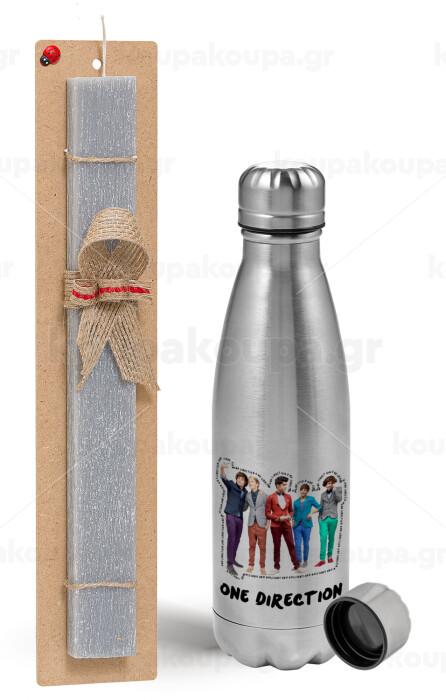 One Direction , Easter Set, metallic Inox water bottle (750ml) & aromatic flat Easter candle (30cm) (GRAY)
