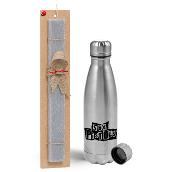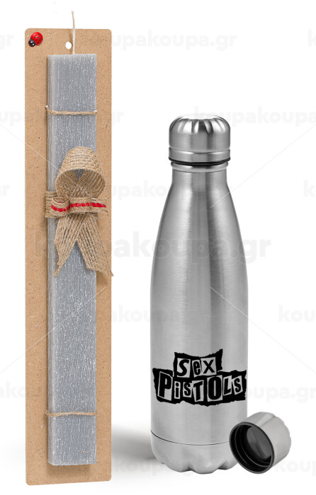 Sex Pistols, Easter Set, metallic Inox water bottle (750ml) & aromatic flat Easter candle (30cm) (GRAY)