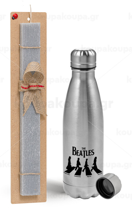 The Beatles, Abbey Road, Easter Set, metallic Inox water bottle (750ml) & aromatic flat Easter candle (30cm) (GRAY)