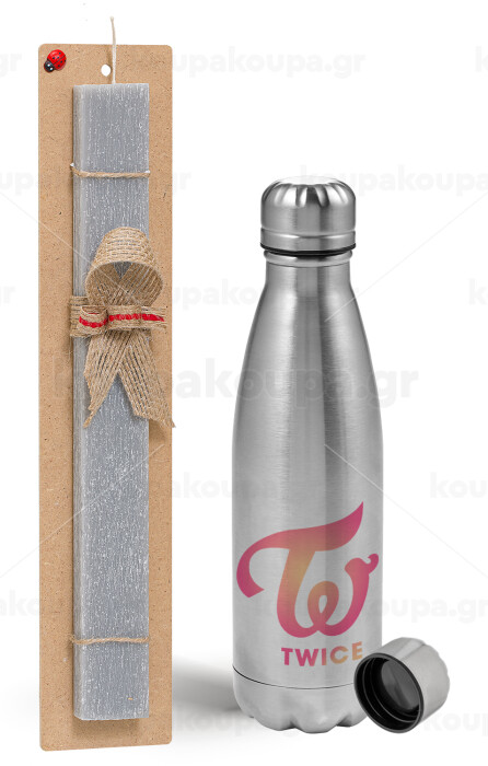Twice, Easter Set, metallic Inox water bottle (750ml) & aromatic flat Easter candle (30cm) (GRAY)