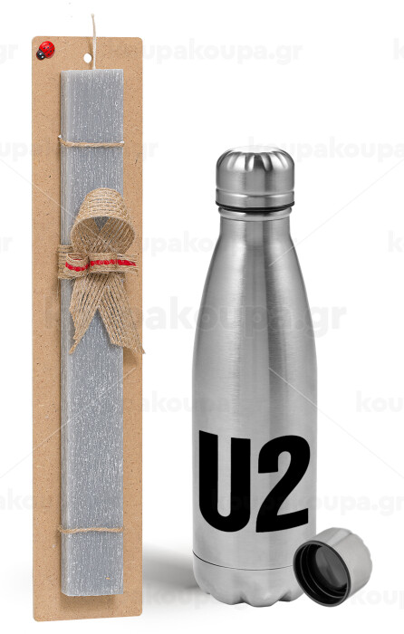 U2 , Easter Set, metallic Inox water bottle (750ml) & aromatic flat Easter candle (30cm) (GRAY)
