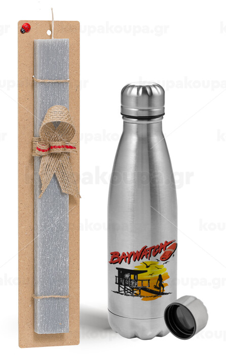 Baywatch, Easter Set, metallic Inox water bottle (750ml) & aromatic flat Easter candle (30cm) (GRAY)