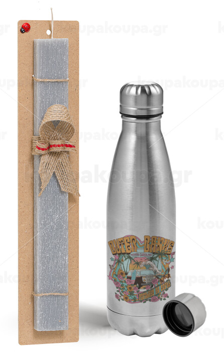 Outerbanks paradise on earth, Easter Set, metallic Inox water bottle (750ml) & aromatic flat Easter candle (30cm) (GRAY)