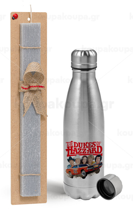 The Dukes of Hazzard, Easter Set, metallic Inox water bottle (750ml) & aromatic flat Easter candle (30cm) (GRAY)