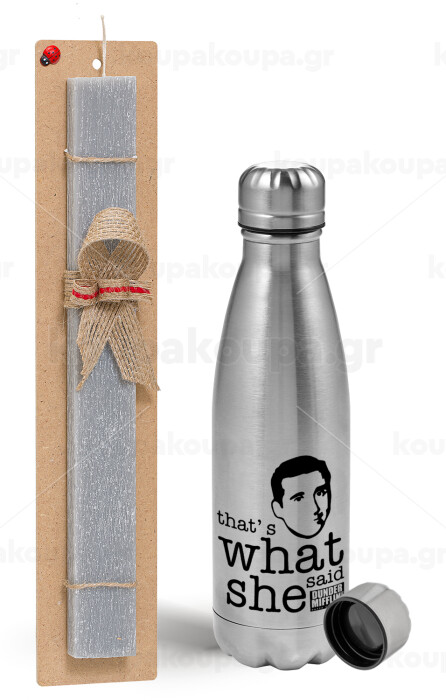 The office Michael That's what she said, Easter Set, metallic Inox water bottle (750ml) & aromatic flat Easter candle (30cm) (GRAY)