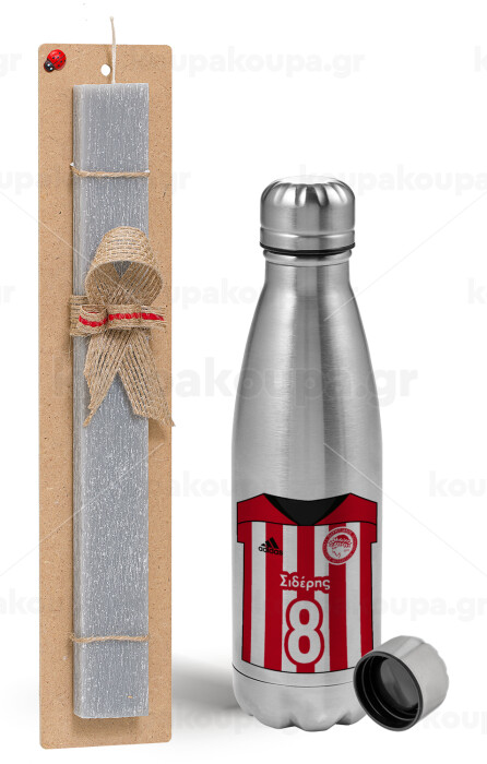 Ολυμπιακός εμφάνιση, Easter Set, metallic Inox water bottle (750ml) & aromatic flat Easter candle (30cm) (GRAY)