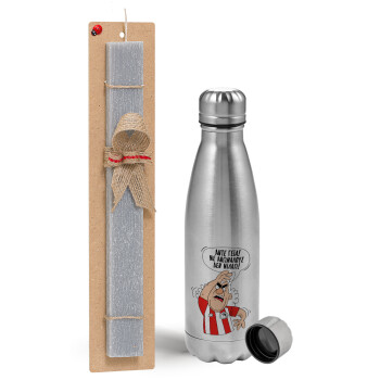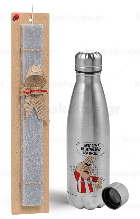 Τάκης, Άντε γεια, με ανώμαλους δεν μιλάω!, Easter Set, metallic Inox water bottle (750ml) & aromatic flat Easter candle (30cm) (GRAY)