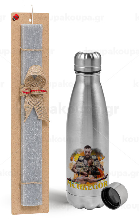 Conor McGregor Notorious, Easter Set, metallic Inox water bottle (750ml) & aromatic flat Easter candle (30cm) (GRAY)