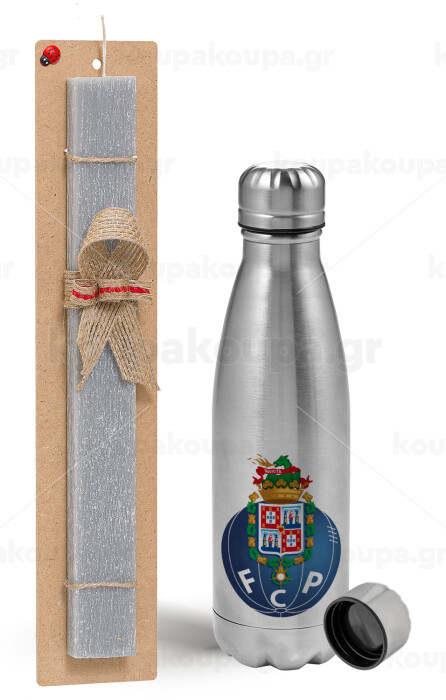 FCP, Easter Set, metallic Inox water bottle (750ml) & aromatic flat Easter candle (30cm) (GRAY)