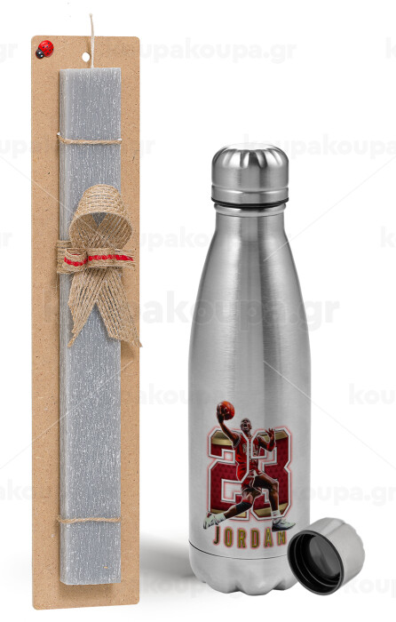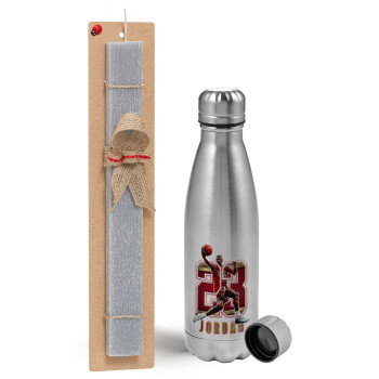 Jordan 23, Easter Set, metallic Inox water bottle (750ml) & aromatic flat Easter candle (30cm) (GRAY)