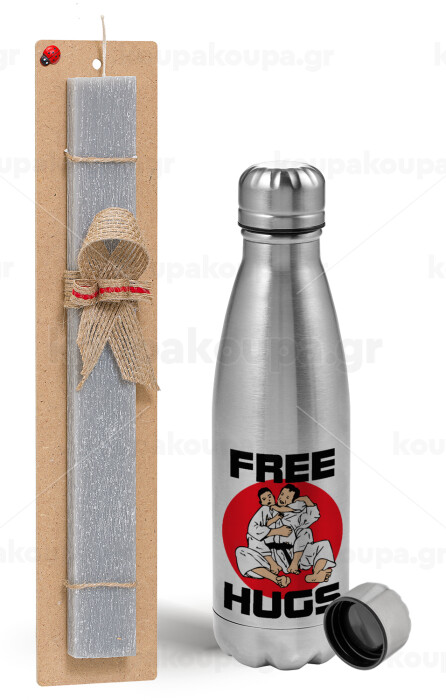 JUDO free hugs, Easter Set, metallic Inox water bottle (750ml) & aromatic flat Easter candle (30cm) (GRAY)