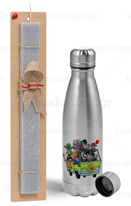 Stitch Halloween scooby car, Easter Set, metallic Inox water bottle (750ml) & aromatic flat Easter candle (30cm) (GRAY)