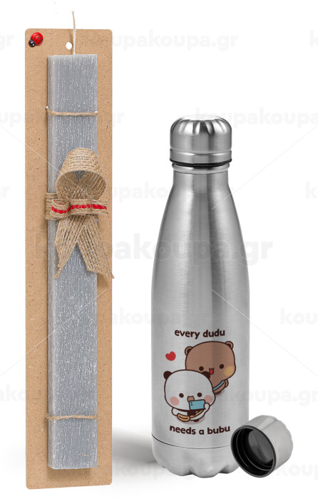 Every Dudu needs a bubu, Easter Set, metallic Inox water bottle (750ml) & aromatic flat Easter candle (30cm) (GRAY)