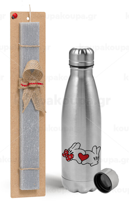 Love hands, Easter Set, metallic Inox water bottle (750ml) & aromatic flat Easter candle (30cm) (GRAY)