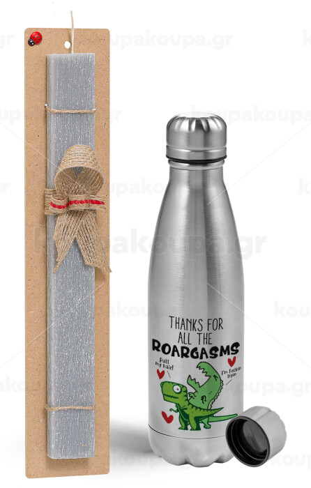 Thanks for all the ROARGASMS, Easter Set, metallic Inox water bottle (750ml) & aromatic flat Easter candle (30cm) (GRAY)