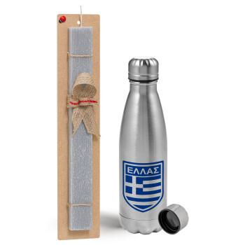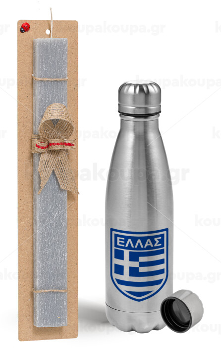 Hellas, Easter Set, metallic Inox water bottle (750ml) & aromatic flat Easter candle (30cm) (GRAY)