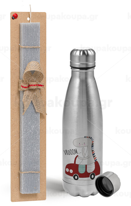 Βρουμ βρουμ, Easter Set, metallic Inox water bottle (750ml) & aromatic flat Easter candle (30cm) (GRAY)