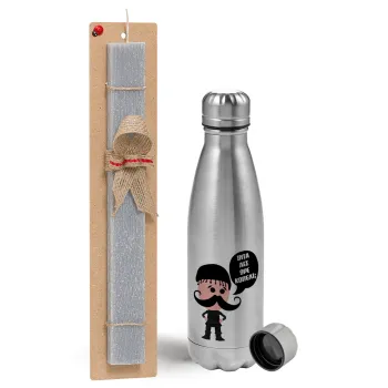 Κρητικός "Ίντα λες ωρέ κοπέλι", Easter Set, metallic Inox water bottle (750ml) & aromatic flat Easter candle (30cm) (GRAY)