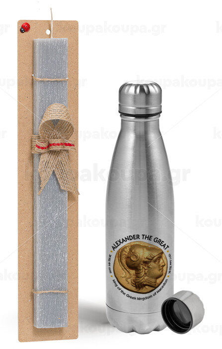 Alexander the Great, Easter Set, metallic Inox water bottle (750ml) & aromatic flat Easter candle (30cm) (GRAY)