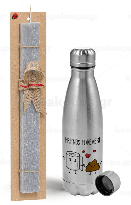 Friends forever, Easter Set, metallic Inox water bottle (750ml) & aromatic flat Easter candle (30cm) (GRAY)