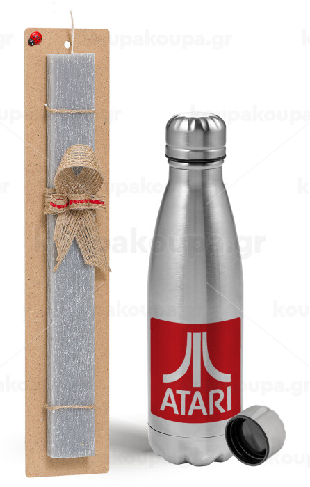 atari, Easter Set, metallic Inox water bottle (750ml) & aromatic flat Easter candle (30cm) (GRAY)
