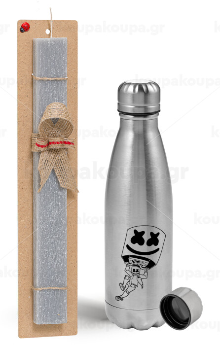 Fortnite Marshmello, Easter Set, metallic Inox water bottle (750ml) & aromatic flat Easter candle (30cm) (GRAY)
