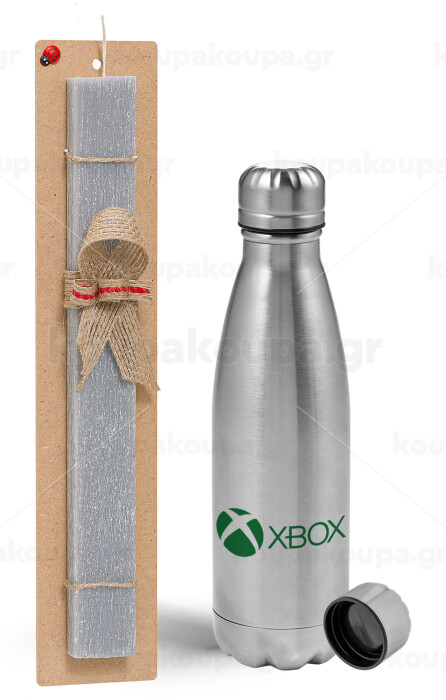 xbox, Easter Set, metallic Inox water bottle (750ml) & aromatic flat Easter candle (30cm) (GRAY)