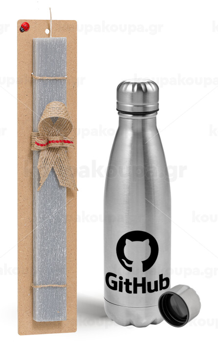 GitHub, Easter Set, metallic Inox water bottle (750ml) & aromatic flat Easter candle (30cm) (GRAY)