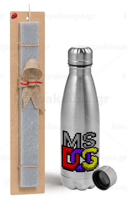 MsDos, Easter Set, metallic Inox water bottle (750ml) & aromatic flat Easter candle (30cm) (GRAY)