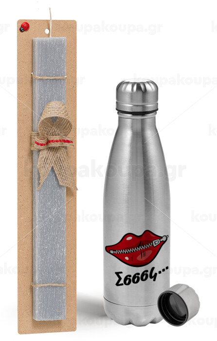 Σσσσς..., Easter Set, metallic Inox water bottle (750ml) & aromatic flat Easter candle (30cm) (GRAY)