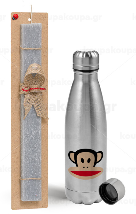 Monkey, Easter Set, metallic Inox water bottle (750ml) & aromatic flat Easter candle (30cm) (GRAY)