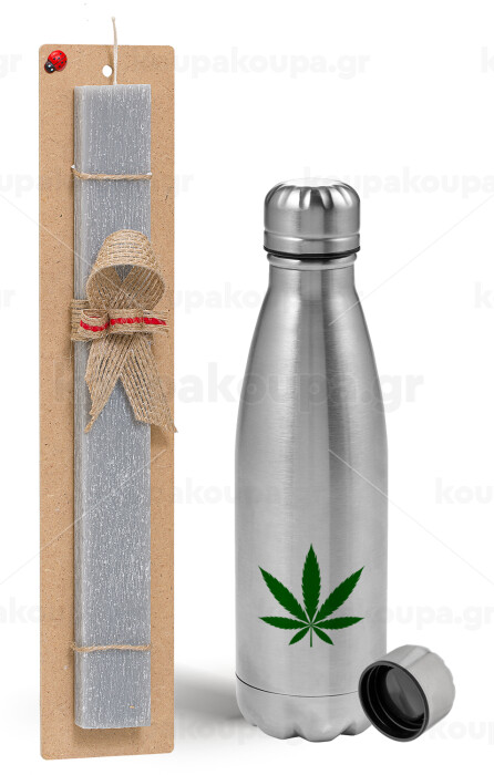 Weed, Easter Set, metallic Inox water bottle (750ml) & aromatic flat Easter candle (30cm) (GRAY)