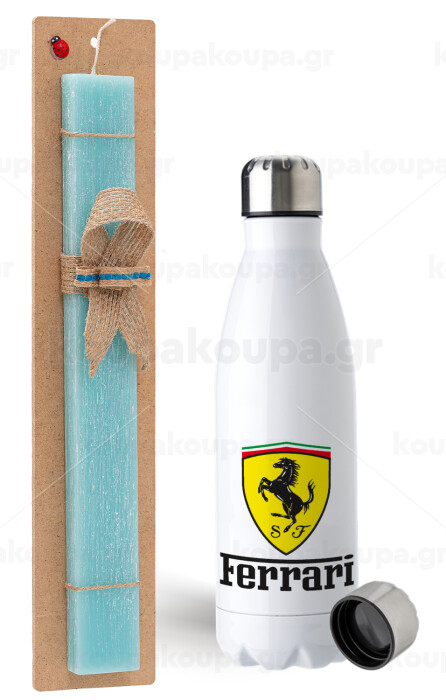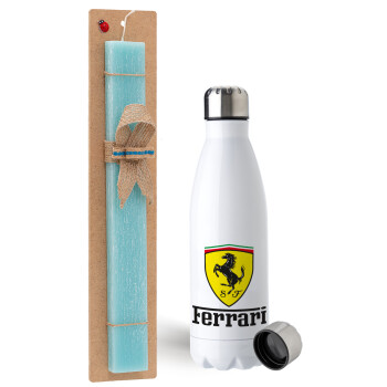 Ferrari S.p.A., Easter Set, metallic stainless steel water bottle (750ml) & aromatic flat Easter candle (30cm) (TURQUOISE)
