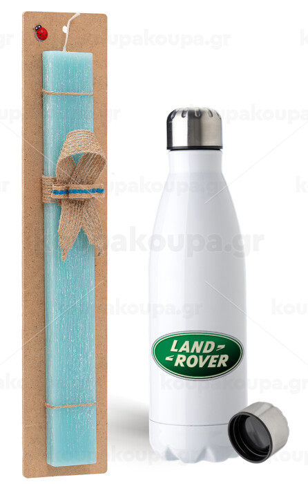 Land Rover, Easter Set, metallic stainless steel water bottle (750ml) & aromatic flat Easter candle (30cm) (TURQUOISE)