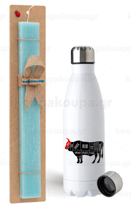 Diagrams for butcher shop, Easter Set, metallic stainless steel water bottle (750ml) & aromatic flat Easter candle (30cm) (TURQUOISE)